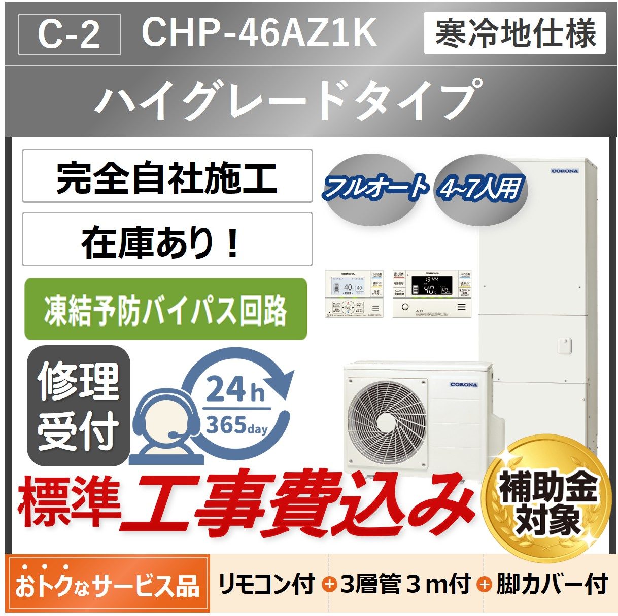 タンクのお湯を使って配管を温める省エネ設計の【凍結予防バイパス回路】内蔵です!