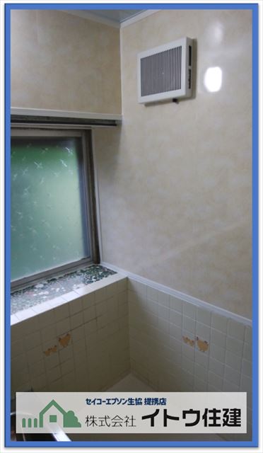 安曇野市で行ったお風呂リフォームの様子をご紹介します。ここでご紹介してきたお風呂リフォームはほとんどがユニットバスへの交換工事でしたが、今回は腰高までの壁がタイル、そのうえ天井までが砂壁、床がタイルというお風呂に、砂壁部分と天井にバスパネル、床に防滑性の高い床材を重ね張りするというリフォームです。弊社が得意な暖かいお風呂にはなりませんが、きれいな浴室をユニットバス交換よりもリーズナブルに工事することができます。費用は約480,000円とユニットバスへの入れ替え工事の3分の1ほどです。工事期間中はお風呂が使えないというのはユニットバス入れ替えと同じですが、工期は短く4日ほどでできます。お風呂が使えないというストレスも軽減される工事です。