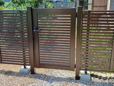 - 生垣の撤去、片開き門扉とフェンスの設置