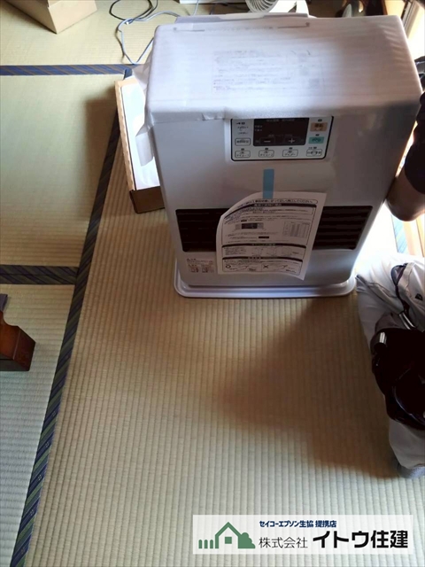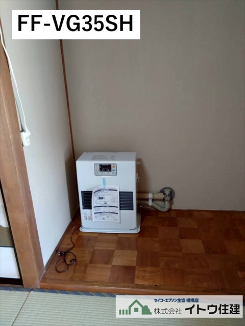 室内には、コロナFF式ファンヒーターFF-WG65SJ(17畳用)を設置しました。