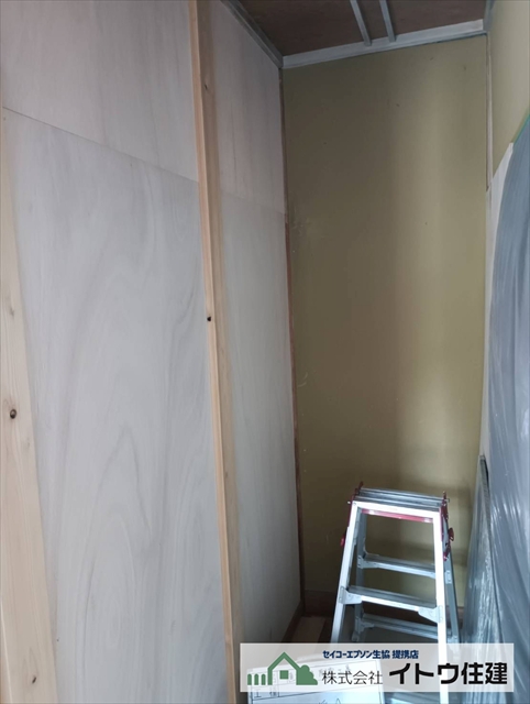 仕上げ前の下準備:クロス用下地ベニヤ張り