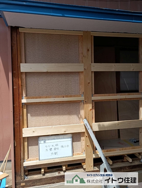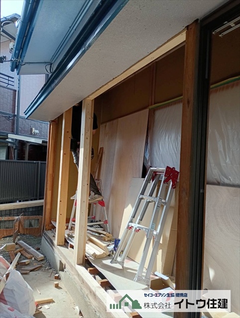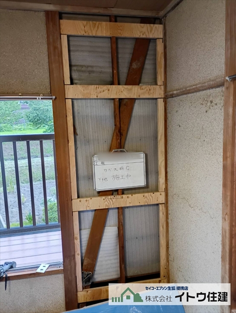 解体後は、耐震壁を設置するための下地造作(したじぞうさく)を行います。