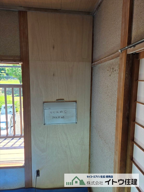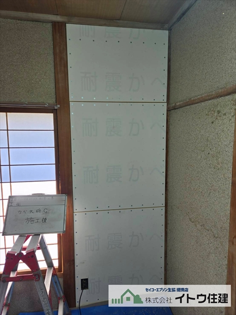 今回の工事では、1階の大きな開口部と、2階和室の壁を重点的に補強。
