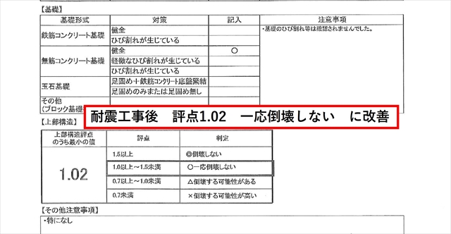 初期診断の0.68から、大きく耐震性能が向上しています。