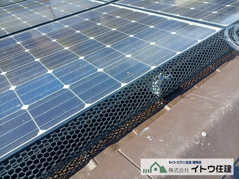 安曇野市|太陽光パネル下の鳩被害を解決!防鳥ネット「グリッドガードⅡ」取付工事
