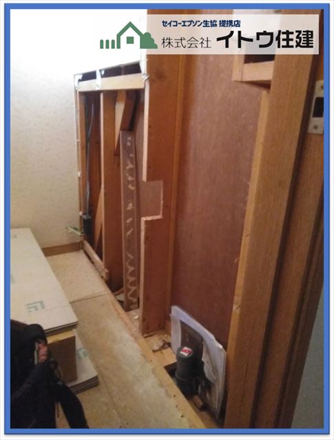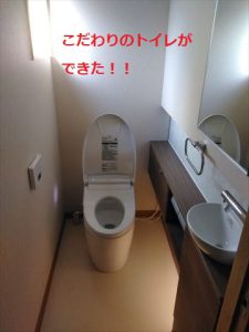 トイレ自体に不具合はなかったのですが、古くなったこと、収納付きの手洗い器が欲しかったことで今回の工事となりました。新しく入れるトイレはTOTOのネオレスト寒冷地仕様です。室内の壁を造作して収納付き手洗いカウンターを取り付けています。塩尻市に限らず長野県は冬場とても寒い地域です。冬場に数日お家をあけるようなことがあるとトイレ内の水が凍って破裂することも珍しくありません。弊社ではトイレはどのメーカーを選択しても必ずヒーター内蔵の寒冷地仕様のものをご提案しています。一般地用に比べて1万円から2万円割高になりますが、凍結した時の復旧工事を考えれば必要経費だと思います。