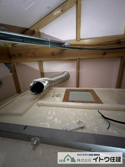 新しい換気扇を取り付ける前に、排気ダクト(配管)や電気配線の状態を確認しました。