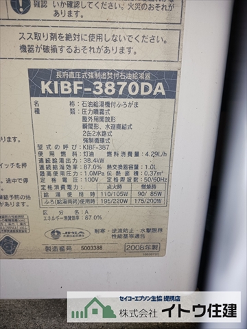 お客様宅では、長府KIBF-3870DAを16年間お使いでした。