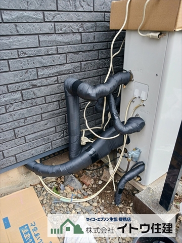 配管にヒーター付き保温材を巻き、さらに防湿テープで補強。