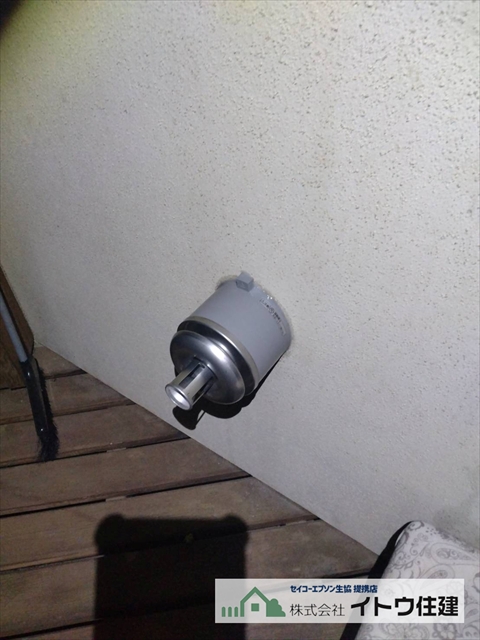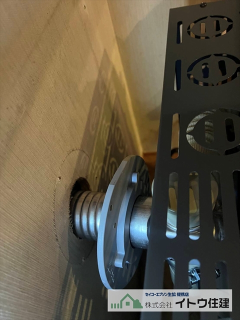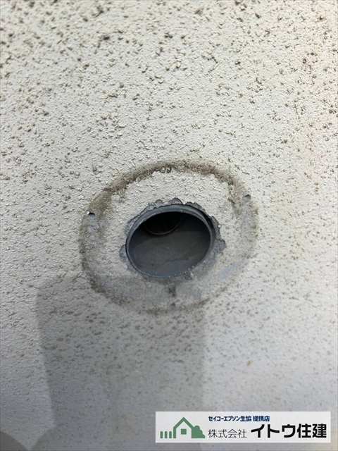 暖房機を外すと、外壁には排気筒が通っていた穴が残ります。